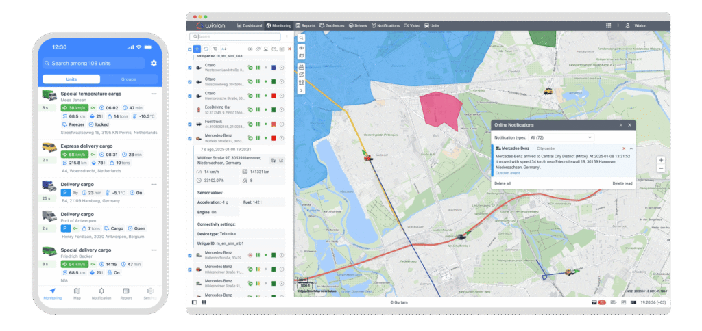 Define virtual boundaries on maps and receive alerts when vehicles enter or exit restricted zones, enhancing security and compliance.