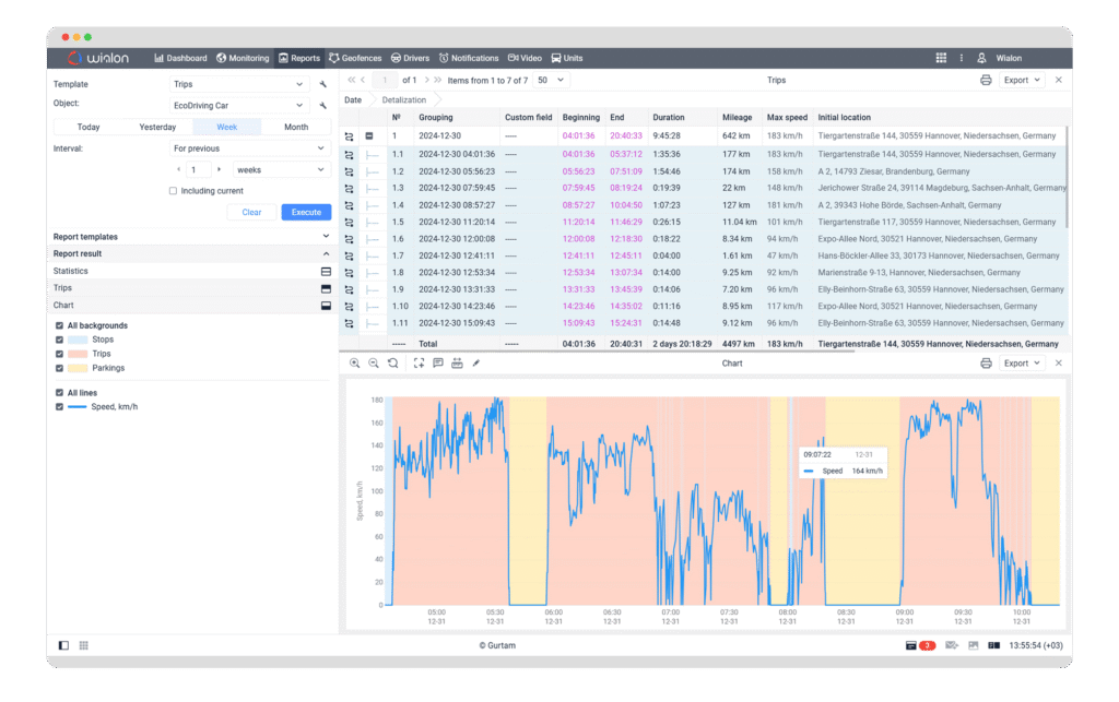They allow you to generate reports on things like trips, fuel consumption, driver behavior, idling time, geofence visits, and maintenance history.