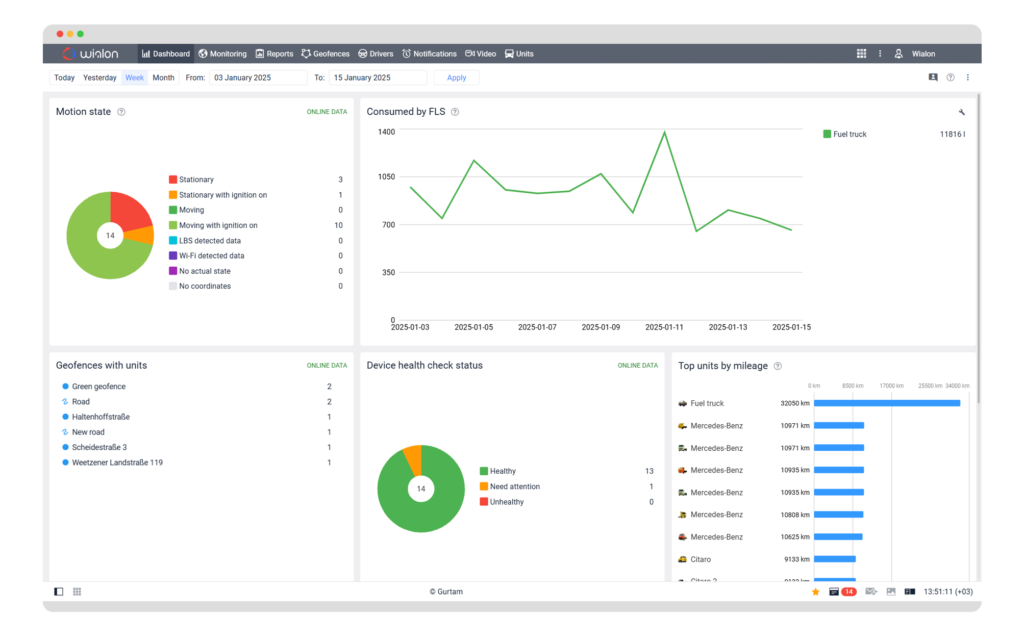 This includes fuel levels, temperature, engine status, door activity, and more, helping you improve control, ensure safety, and make informed operational decisions.