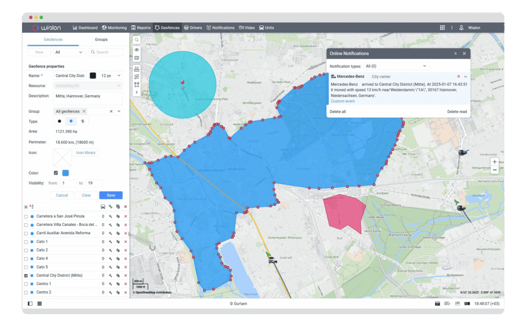It tracks when vehicles enter or exit these zones and triggers alerts, helping improve security, monitor routes, and ensure drivers follow assigned locations.